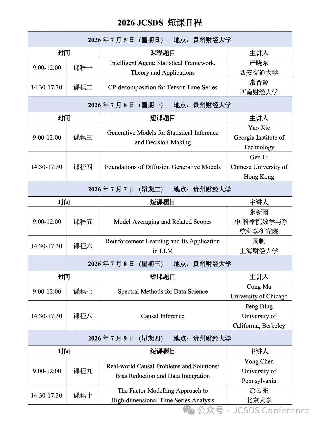 本课程主要面向海内外统计与数据科学领域的青年师生学者,包括: